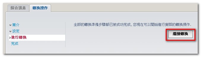 ps. 進行轉換前, 若有其他資料想一併轉換, 則請參考此文先行處置