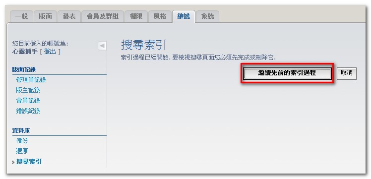 ps. '搜尋索引' 尚未轉換, 必須稍後重新建立