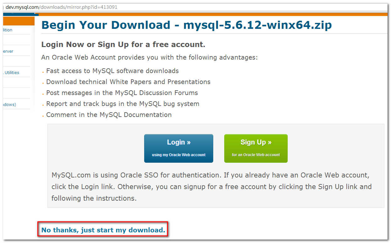 否則,您得提供必要的資訊給 MySQL.com 才能順利下載。