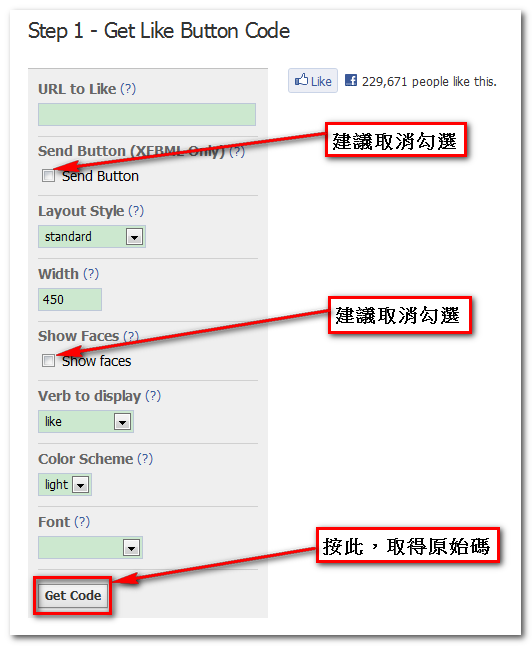 - 填入需要顯示 Facebook Like Button(說「讚」按鈕)的網頁之網址:
