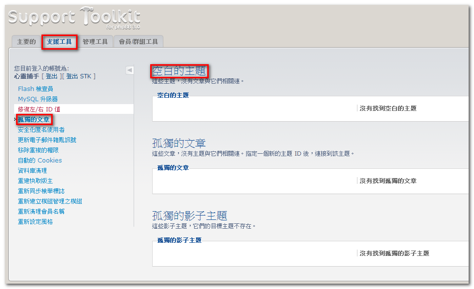 • STK -> 支援工具 -> 孤獨的文章 -> 空白的主題